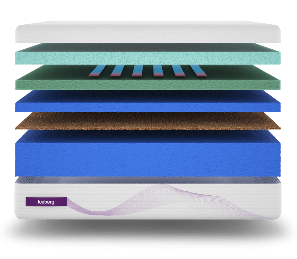 6 benzi IcebergCool™ acționează ca niște conductori termici, direcționând căldura departe de corp pentru ușura somnul pe parcursul întregii nopți.